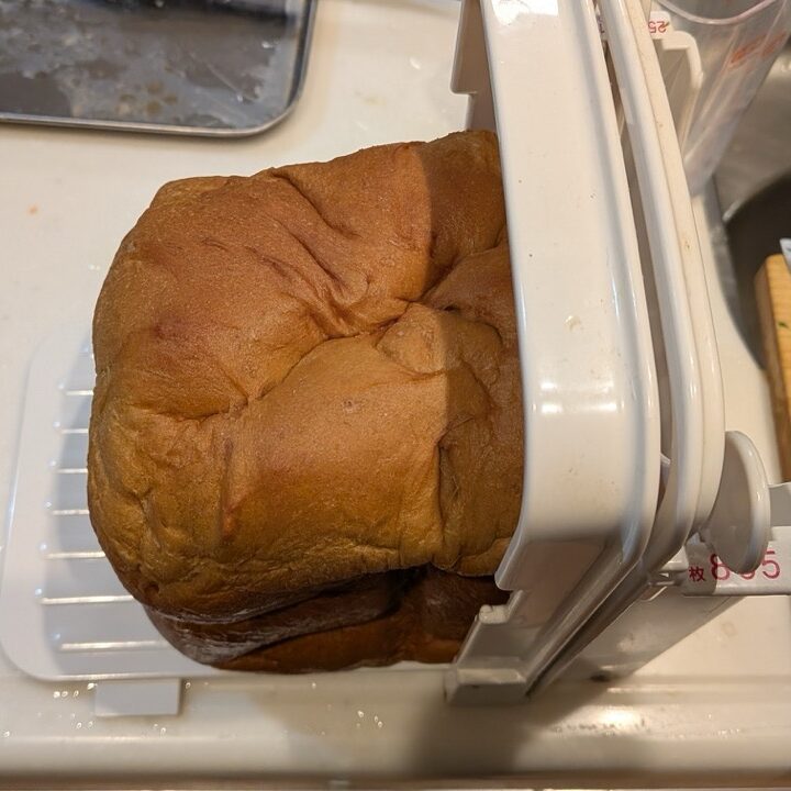 作業工数は至ってシンプルです。「計量して、材料を入れて、スタートボタンを押すだけ」。 焼き上がったパンは粗熱を取り、スライサーで均等にカットして1枚ずつラップで包み、そのまま冷凍庫へストックします。